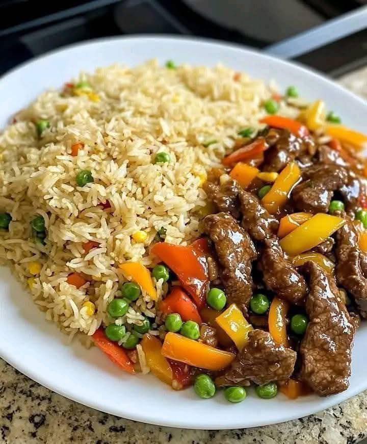 This Beef Pepper Stir-Fry with Vegetable Fried Rice is a flavorful, vibrant dish that combines tender beef strips with a savory stir-fry sauce, paired with fluffy basmati rice and sautéed vegetables. It’s a well-balanced meal that’s packed with texture and taste—perfect for a quick and satisfying dinner!
