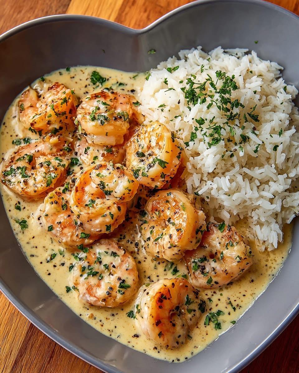 🍤 Creamy Garlic Shrimp with Rice — Rich, Buttery, and Full of Flavor This creamy garlic shrimp with rice brings together tender, quick-seared shrimp and a velvety Parmesan cream sauce for a comforting, restaurant-style meal. The shrimp are lightly seasoned and cooked just long enough to stay juicy, while the sauce blends garlic, broth, cream, … Lire plus