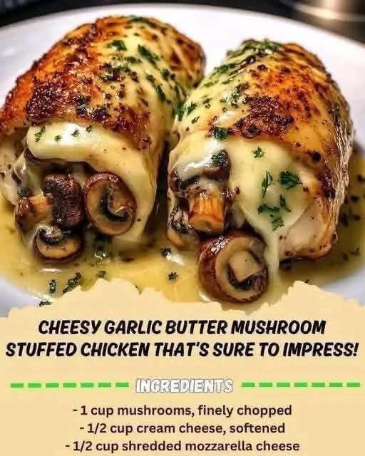 Cheesy Garlic Butter Mushroom Stuffed Chicken