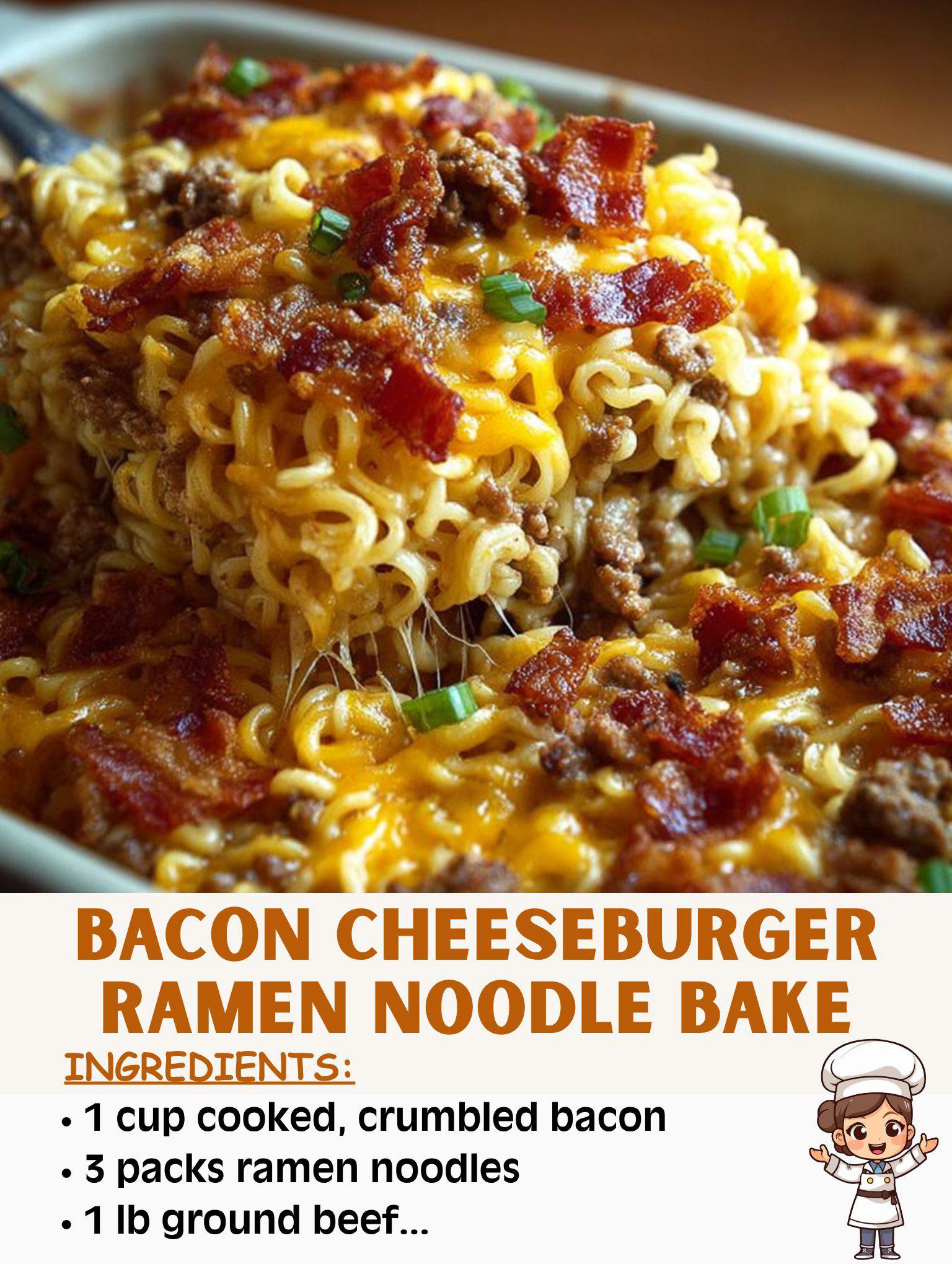 Bacon Cheeseburger Ramen Noodle Bake 🥓🍔🍜 A fun and flavorful twist on classic comfort food — this Bacon Cheeseburger Ramen Noodle Bake combines everything you love about a bacon cheeseburger with the cozy texture of creamy noodles. Loaded with ground beef, crispy bacon, melted cheese, and tender ramen, this easy casserole is pure cheesy, savory … Lire plus