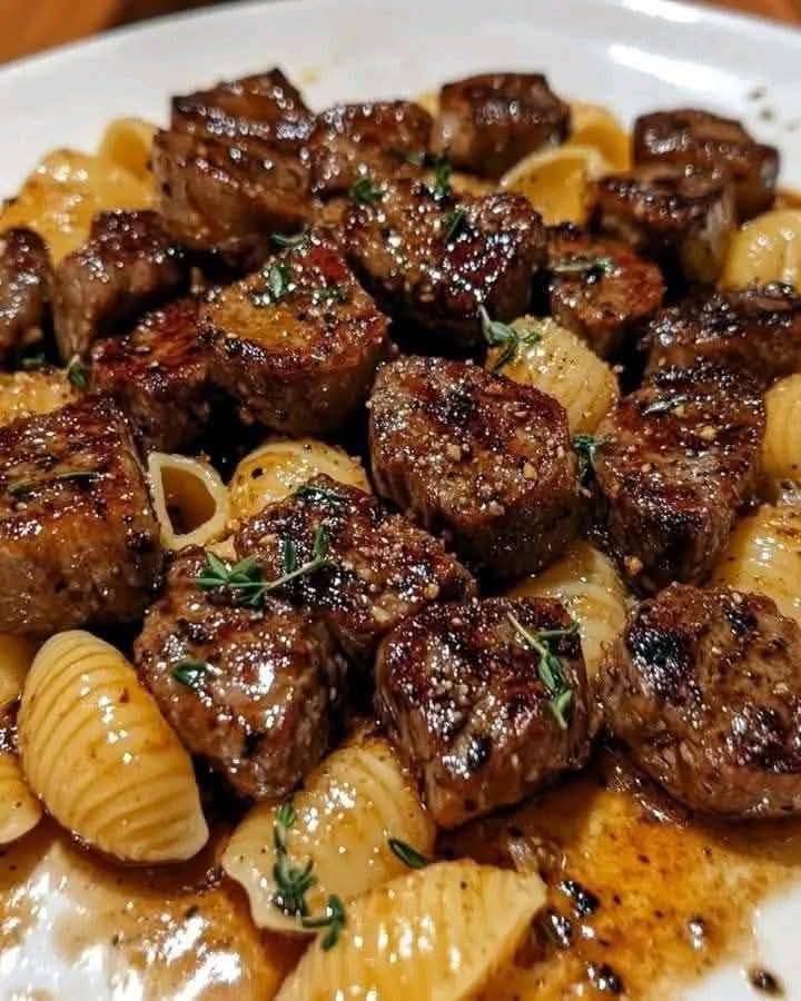 Garlic Butter Steak Bites & Creamy Parmesan Shells