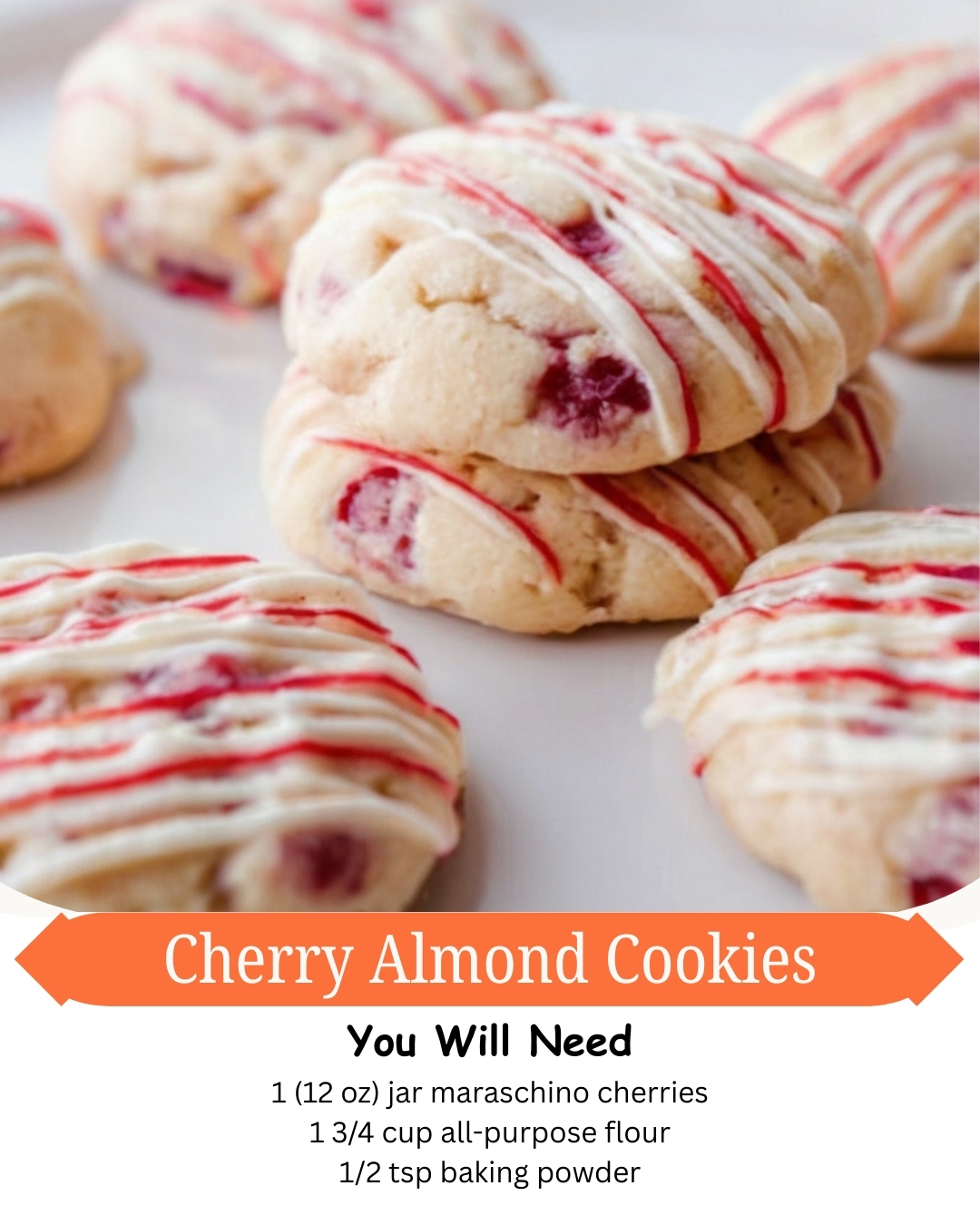 Ingredients These Cherry Almond Cookies blend the nostalgic sweetness of maraschino cherries with fragrant almond extract and a soft, buttery dough. The result is a tender cookie dotted with bright cherry pieces and, if added, crunchy chopped almonds for extra texture. 1 (12 oz) jar maraschino cherries, drained (reserve 1–2 tbsp juice) 1 3/4 cup … Lire plus