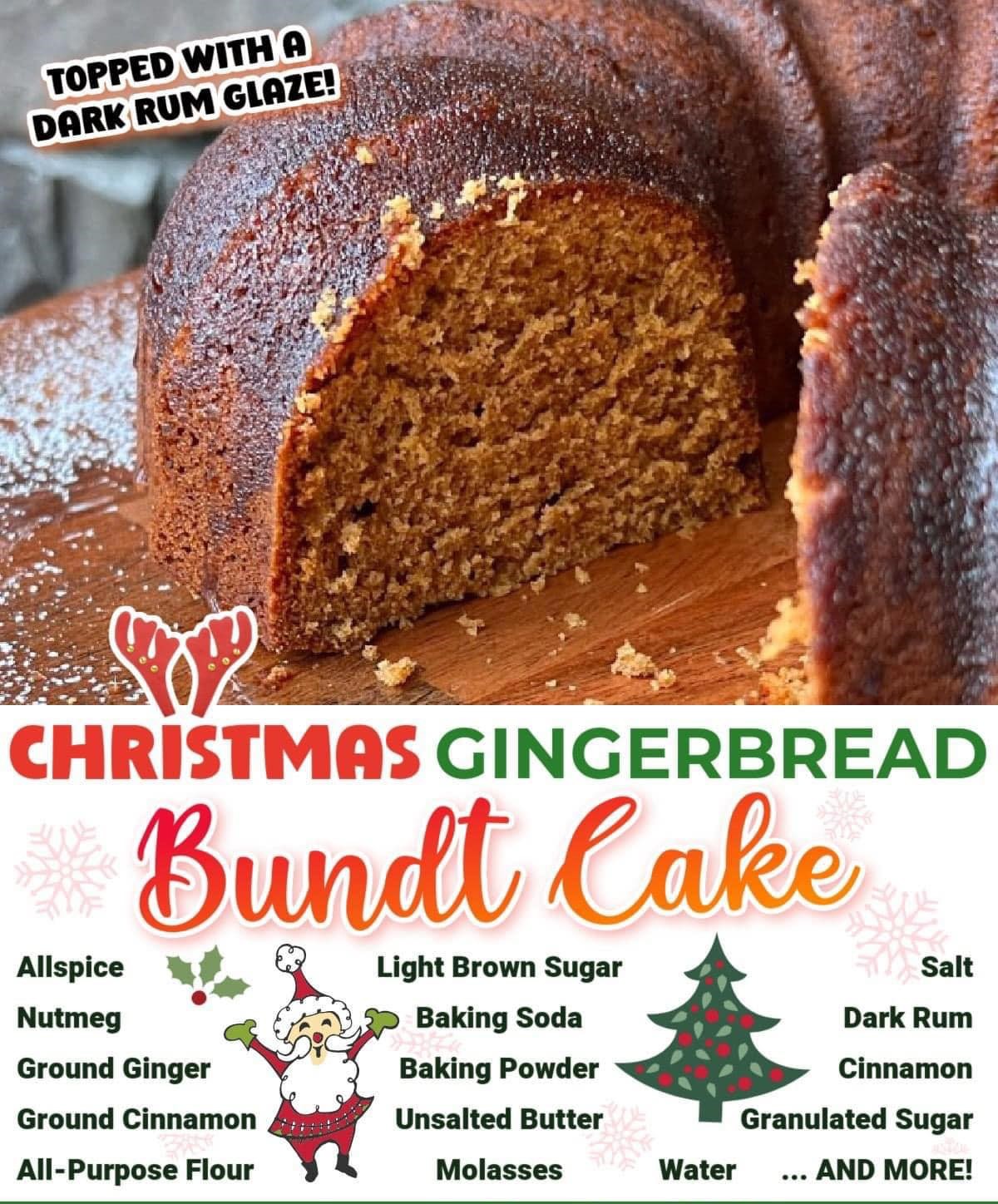 🎄 Gingerbread Bundt Cake with Dark Rum Glaze This classic Gingerbread Bundt Cake is a holiday showstopper full of warm, spiced flavor and finished with a dark rum glaze that soaks right into every slice. Moist, fragrant, and beautiful on any dessert table, it’s a foolproof Christmas cake that guests of all ages will remember. … Lire plus