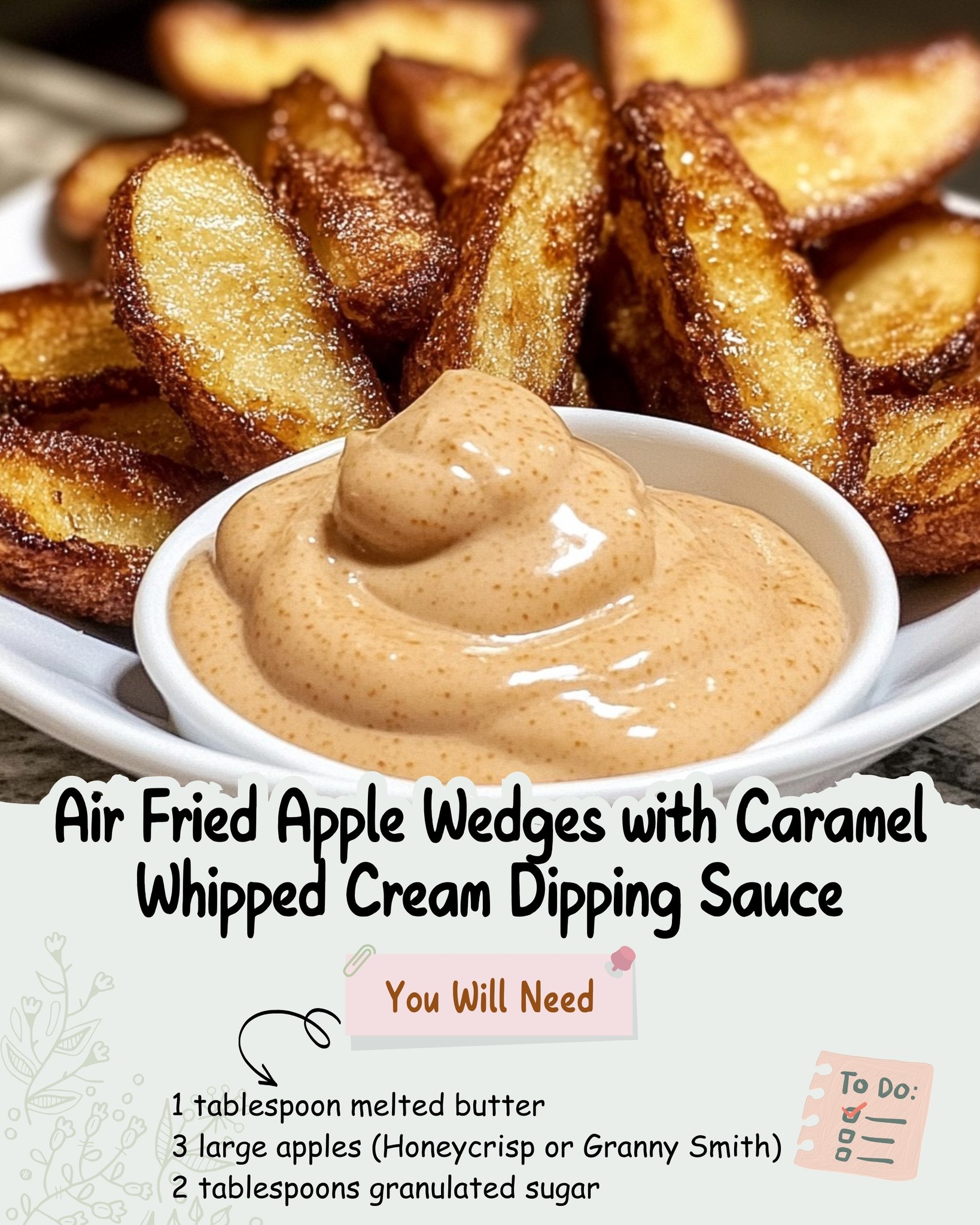 Air Fried Apple Wedges with Caramel Whipped Cream Dipping Sauce