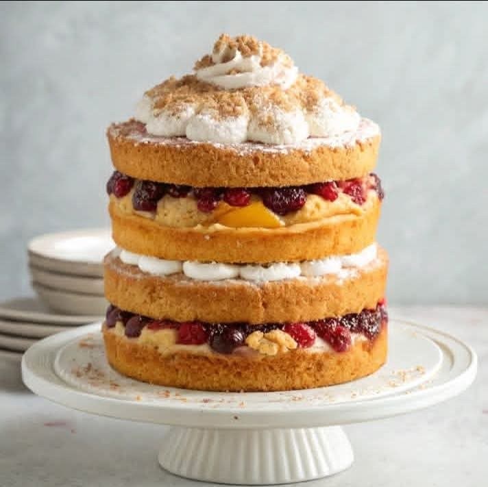 The Cherpumple is a towering dessert phenomenon — a full apple pie, cherry pie, and pumpkin pie each baked into their own cake layers, then stacked high and frosted like a classic layer cake. Outrageous? Absolutely. Delicious? Unforgettably. This show-stopping treat is perfect for holidays, parties, or anytime you want to serve a jaw-dropping slice of nostalgia and indulgence!