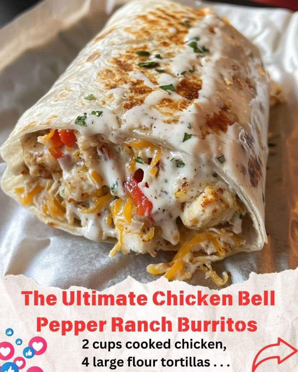 These Chicken Bell Pepper Ranch Burritos are a quick, satisfying meal bursting with flavor and color. Tender chicken, sautéed bell peppers, and onions are tossed in creamy ranch dressing and melted cheese, then wrapped in a warm tortilla for a perfect handheld dinner. Ideal for busy weeknights, meal prep, or a fun Tex-Mex twist, this recipe delivers creamy, cheesy comfort in every bite!