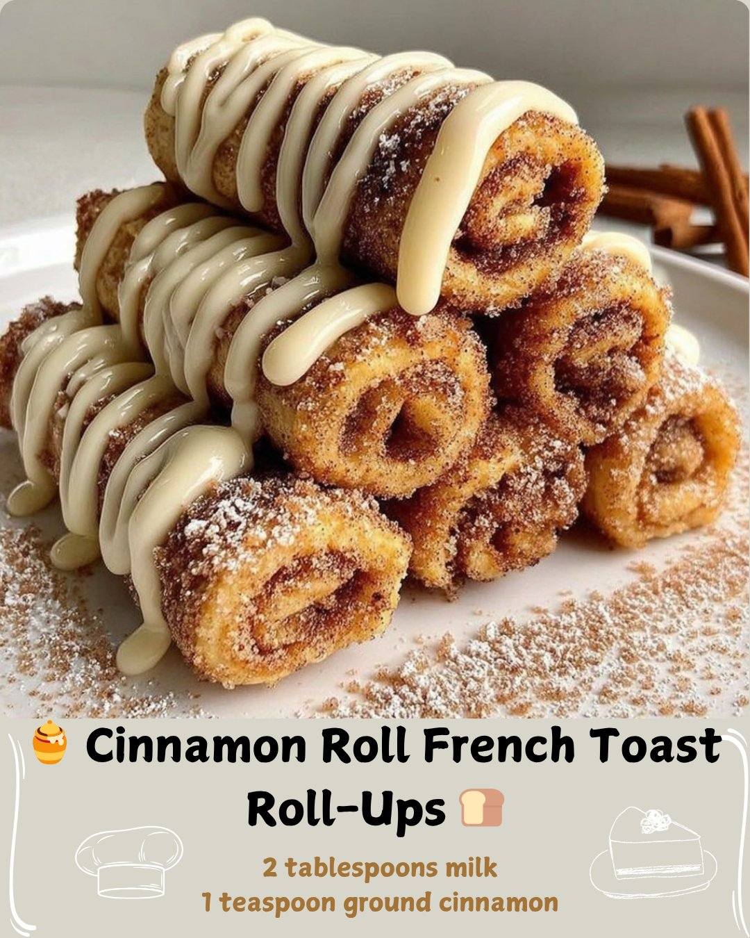 Cinnamon Roll French Toast Roll-Ups are a deliciously indulgent breakfast or brunch treat, combining the flavors of a cinnamon roll with the crisp edges of French toast. Filled with sweetened cream cheese, pan-fried until golden, and rolled in cinnamon sugar, these are perfect for dipping in warm maple syrup and sure to be a hit with kids and adults alike.