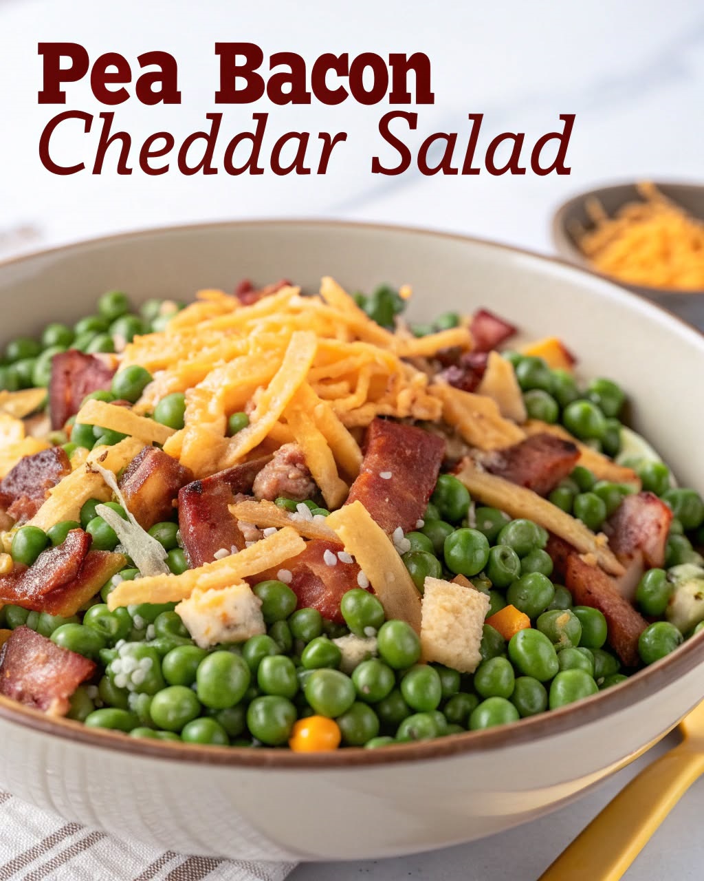 This creamy, crunchy Southern-style pea salad is a nostalgic favorite with a flavorful twist. Packed with sweet peas, smoky bacon, cheddar cheese, and chopped eggs, it’s the perfect side dish for picnics, cookouts, and holiday gatherings. It’s quick to make, easy to love, and even better after a chill in the fridge!