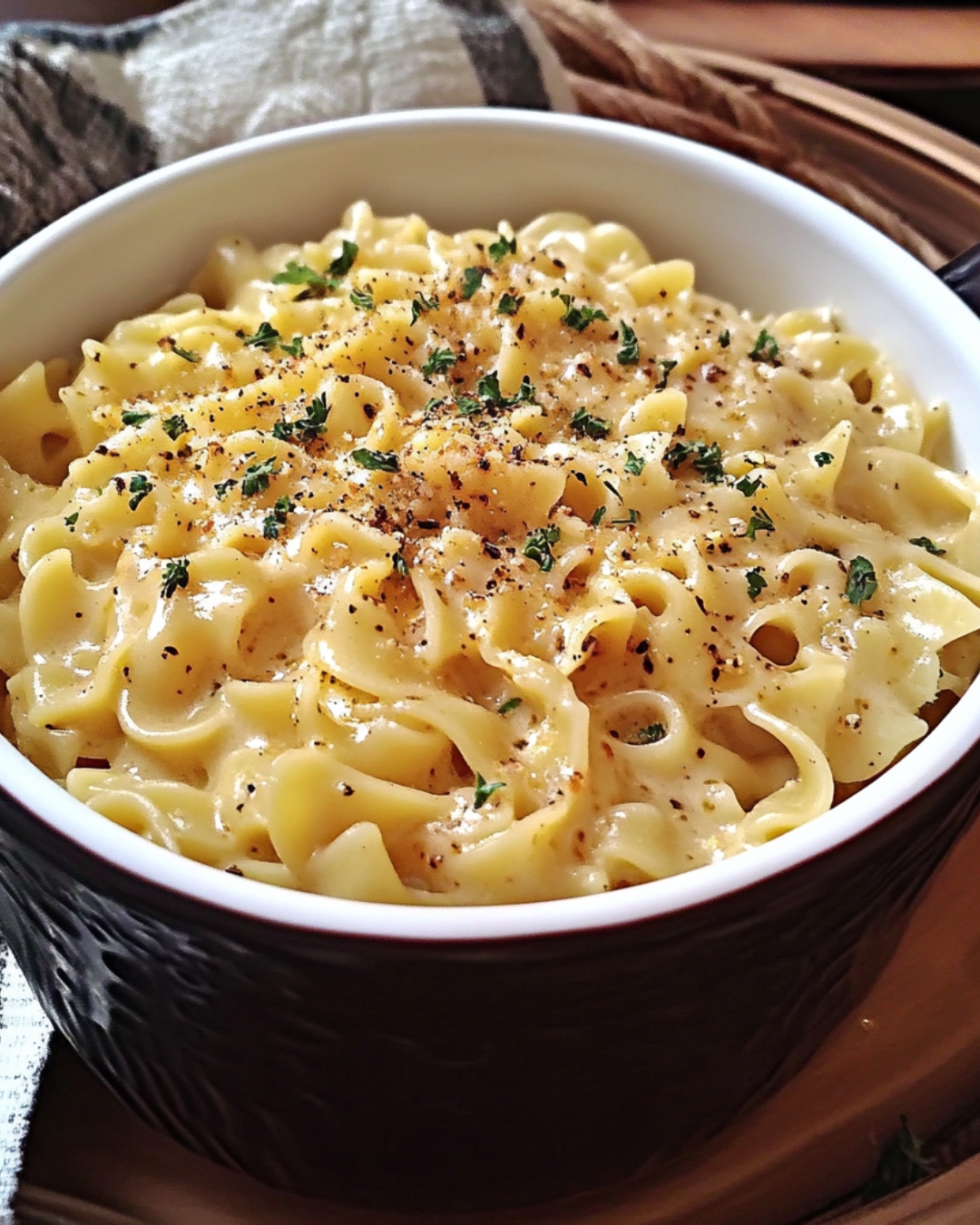 Cafeteria Noodles are the ultimate nostalgic comfort food—creamy, buttery egg noodles simmered in a savory sauce made with condensed soup and broth. These soft, seasoned noodles mimic the iconic side dish found in Southern lunchrooms and church suppers, and they’re made with just a few pantry staples. Serve them with roast chicken, meatloaf, or on their own for a warm, satisfying bite.