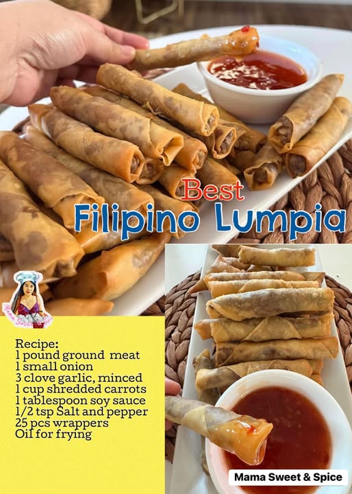 Crunchy, savory, and downright addictive, Filipino Lumpia are the ultimate crowd-pleasing appetizer! These golden spring rolls are filled with a flavorful mixture of ground meat and vegetables, wrapped tightly, and deep-fried to crisp perfection. Dip them in sweet chili sauce for the perfect combination of heat and sweetness — a bite-sized delight everyone will love!