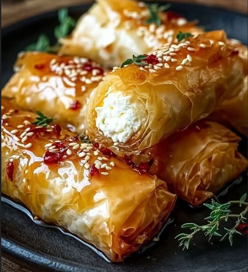 Crispy Phyllo Feta Rolls with Chili Honey Glaze 🥐🍯🌶️