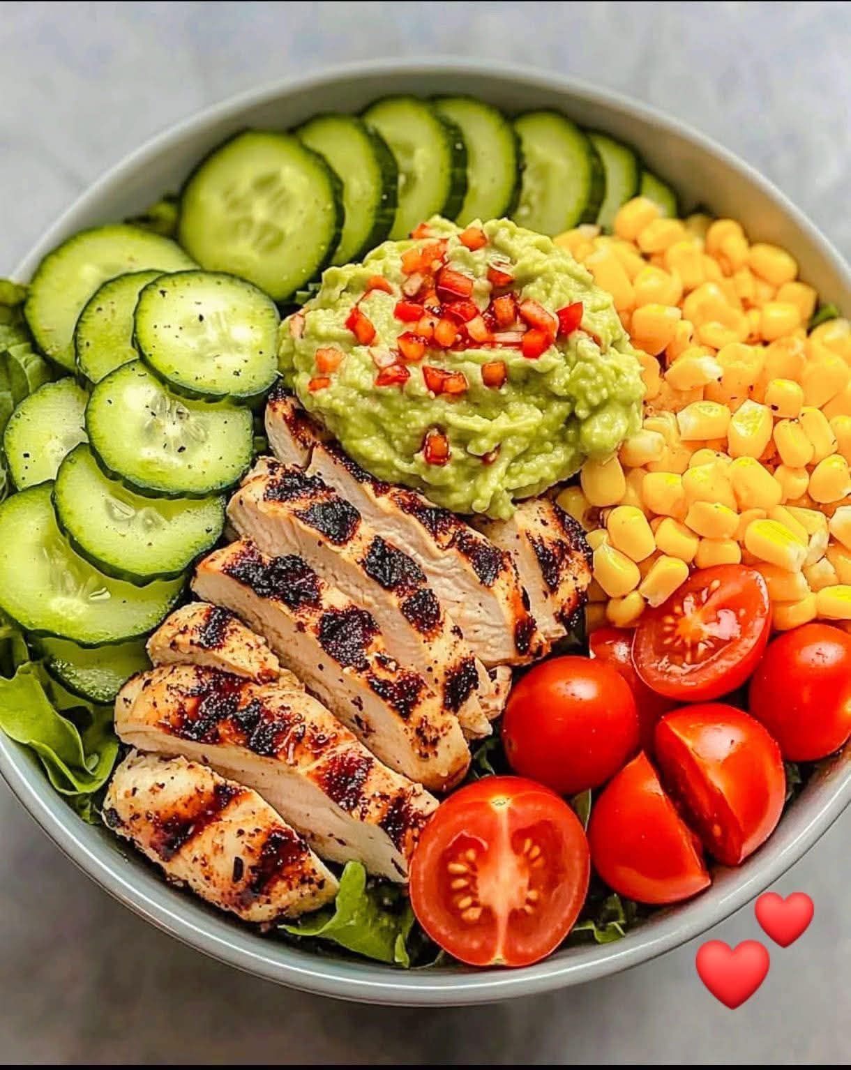 This Fresh Grilled Chicken Guacamole Salad Bowl is a vibrant, nutrient-rich meal that comes together quickly with crisp vegetables, juicy grilled chicken, and creamy homemade guacamole. Light yet satisfying, it’s perfect for warm days or anytime you want a clean, flavour-packed lunch or dinner. Optional toppings like crushed tortilla chips or dressing add customizable crunch and richness.