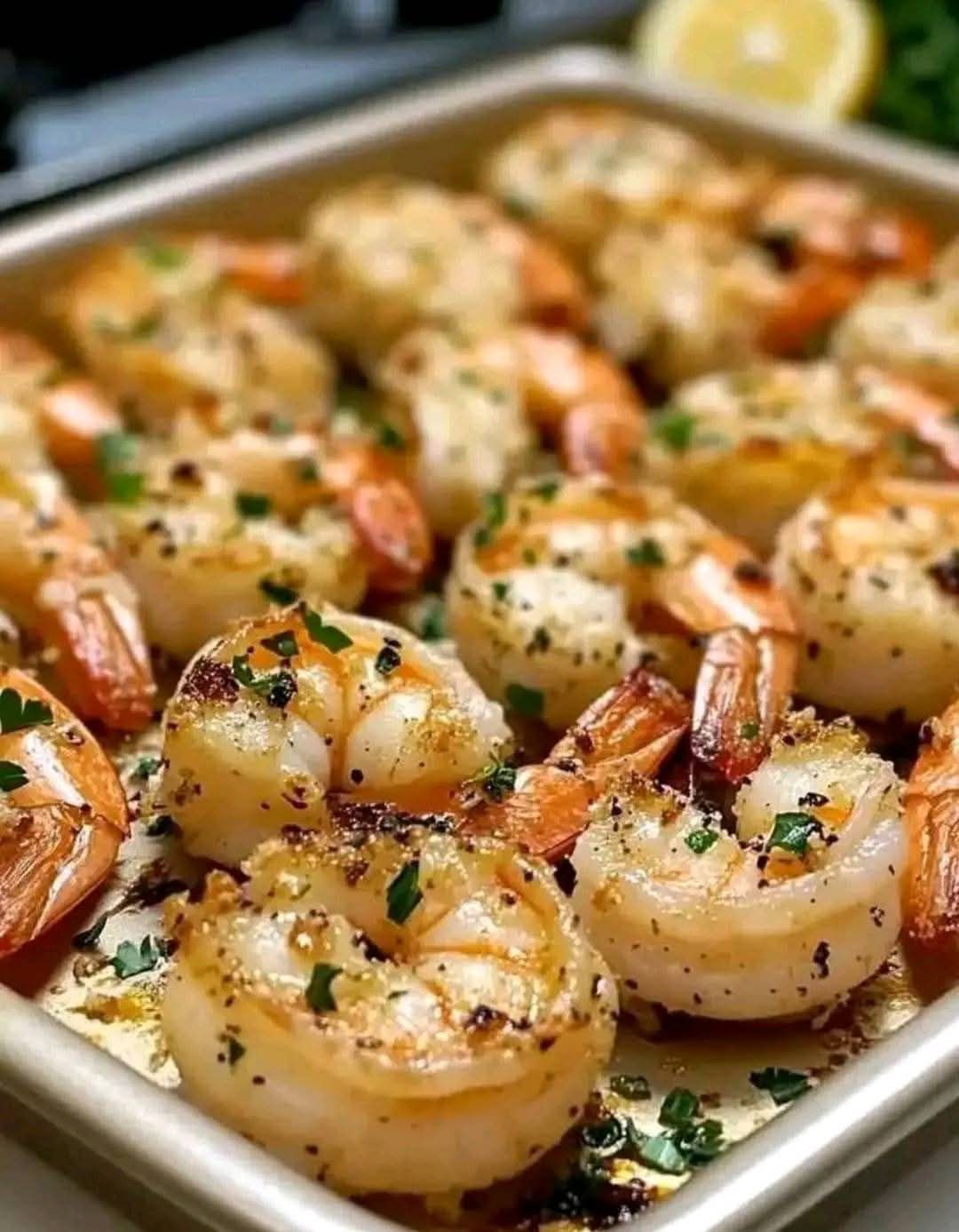 Garlic Parmesan Roasted Shrimp — juicy, buttery shrimp roasted to perfection with garlic, Parmesan, and Italian herbs. Ready in just 15 minutes, this dish is elegant enough for dinner parties yet simple enough for a quick weeknight meal. Serve it with pasta, rice, or crusty bread for an irresistible seafood feast! 🍋🧄🦐