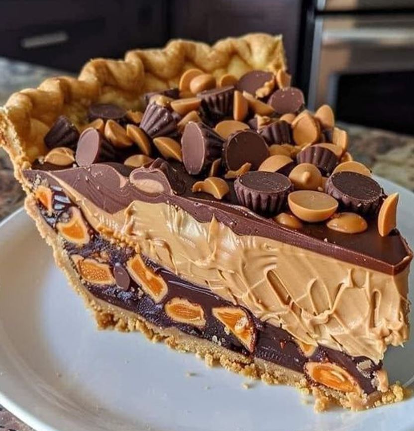 This Giant Reese’s Peanut Butter Pie is a decadent dessert that combines creamy peanut butter, rich chocolate, and crunchy peanuts. With layers of melted dark chocolate, peanut butter filling, and a smooth chocolate ganache topping, it’s an indulgent treat that’s perfect for any peanut butter and chocolate lover. Whether it’s for a special occasion or just because, this pie is sure to impress!