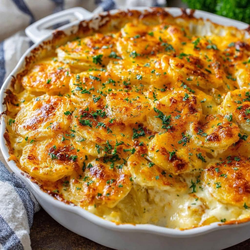 Warm, golden, and irresistibly creamy — this Golden Glow Cheesy Potato Bake is the definition of comfort food. Tender layers of thinly sliced potatoes are baked in a rich, velvety cheese sauce until bubbling and beautifully golden on top. Perfect for family dinners, holidays, potlucks, or cozy nights at home, this dish delivers pure satisfaction in every bite. Its enticing aroma, creamy texture, and stunning golden finish make it a guaranteed crowd favorite.