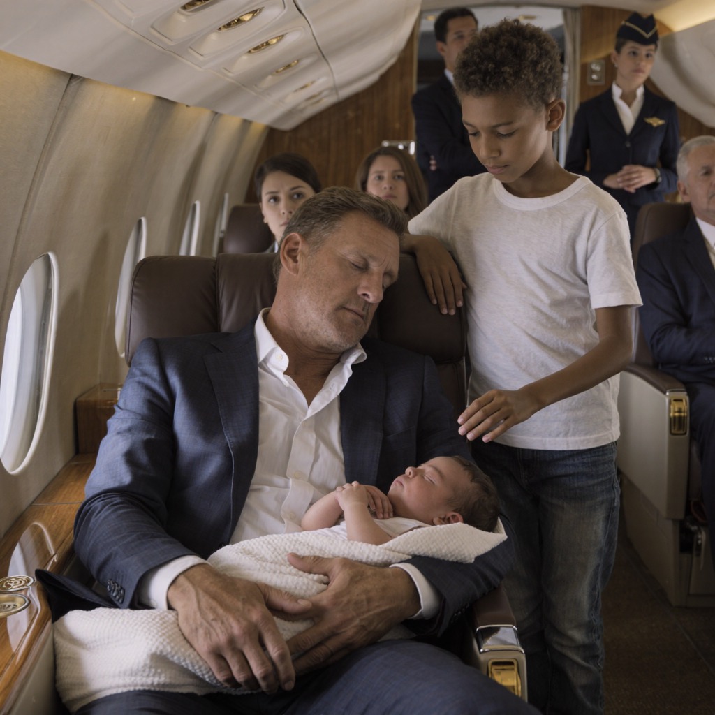 He carried Nora close to his chest as he cleared customs, the baby’s soft breaths warming the collar of his coat. She was calm now, her little face turned toward his heartbeat, a reminder of what steadiness sounded like. He thought of the boy—the one who had done the impossible at thirty thousand feet—and smiled faintly to himself.
