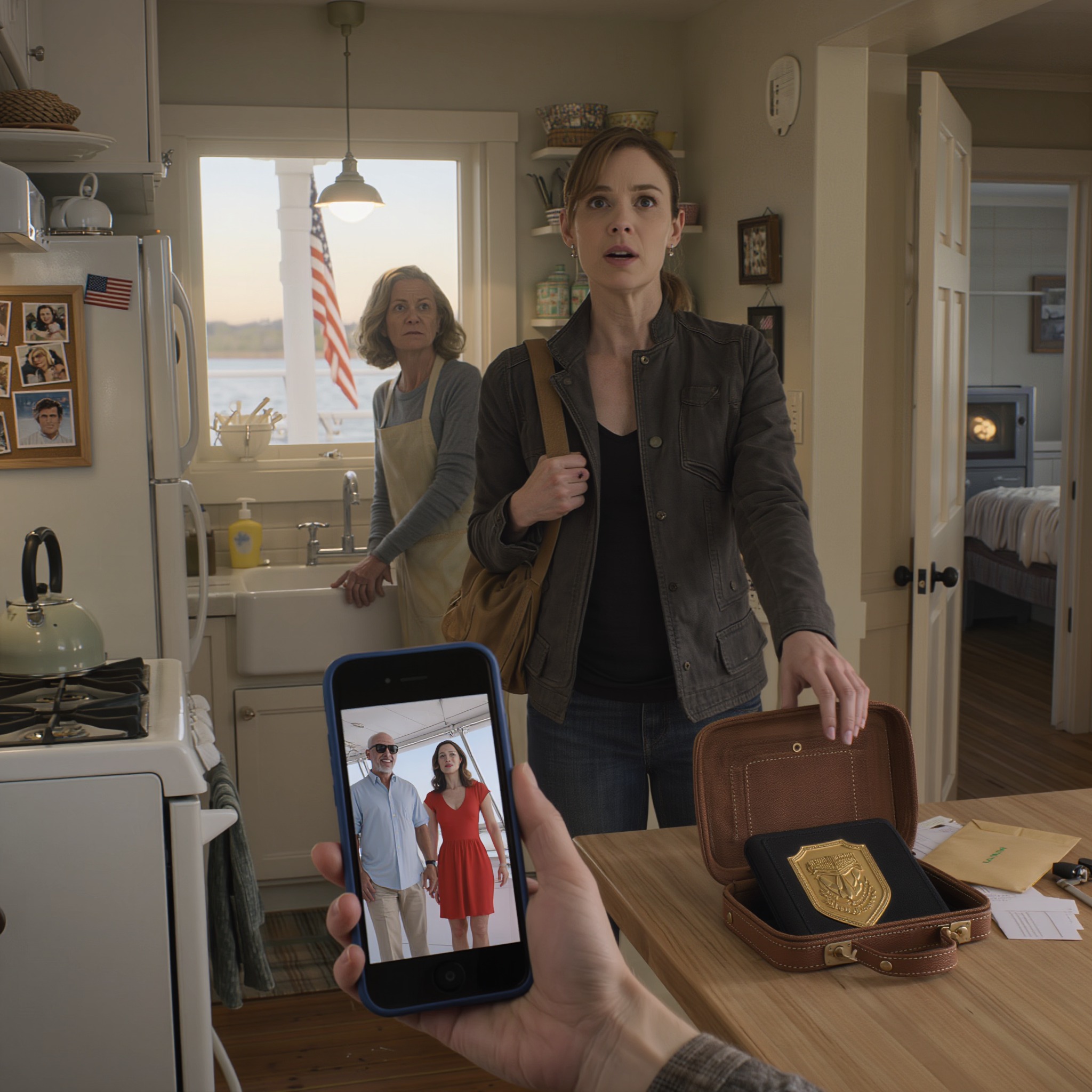 Minutes later, I saw my father… smiling on a yacht with his mistress, champagne in hand. That’s when I opened the safe, took out my police badge, and made a single call to my lawyer: “Burn it all.”I had my phone to my ear before I even set down my overnight bag. “Burn it all,” I told my lawyer. No hello, no explanation. Just three words. The kind you only say when you know the game has already begun. The line went quiet for a second, like he was giving me one last chance to change my mind.