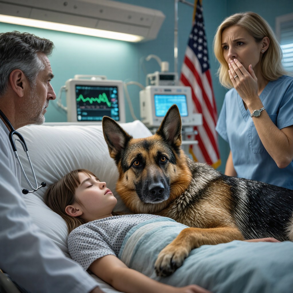 In the days that followed, the entire hospital seemed to change. Staff who once rushed through their routines now slowed their steps when they passed Room 217. Some stopped at the doorway, silent witnesses to a scene that remained the same day and night: a large German Shepherd lying across the bed of a fragile little girl.