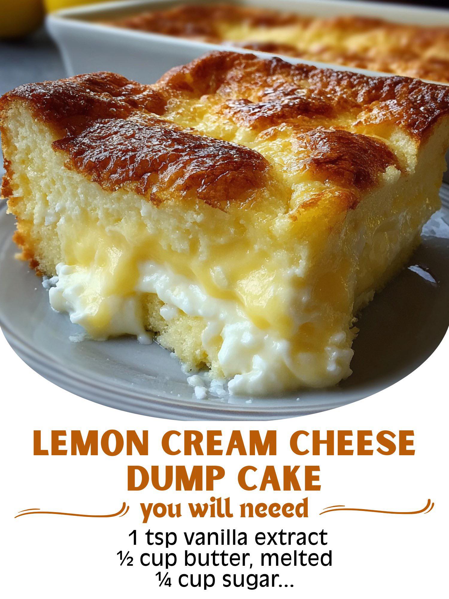 This Lemon Cream Cheese Dump Cake is a sunshine-filled dessert that’s as easy as it is delicious. With layers of tart lemon pie filling, sweet and tangy cream cheese, and buttery golden cake mix, this dump-and-bake treat is the perfect way to brighten any day. Serve it warm with a scoop of vanilla ice cream or enjoy it chilled straight from the fridge!