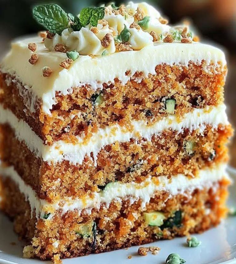 Moist Carrot Zucchini Cake with Cream Cheese Frosting 🥕🥒🍰