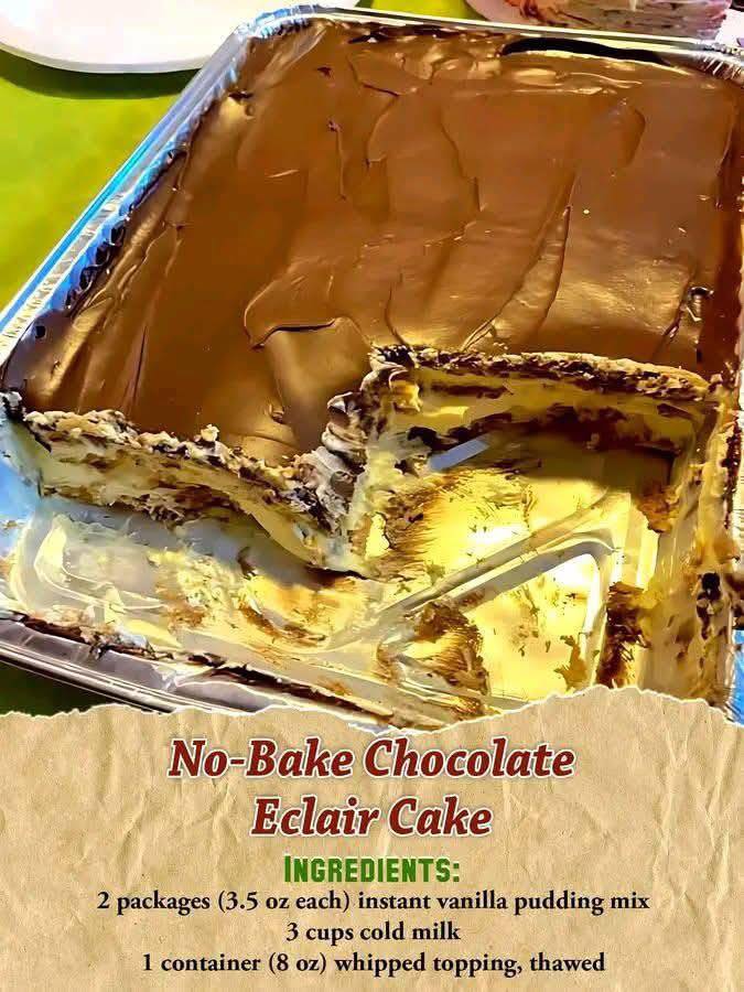 This No-Bake Chocolate Eclair Cake is an indulgent and easy-to-make dessert that tastes just like a chocolate eclair, but with none of the baking required! With layers of creamy vanilla pudding, graham crackers, and a rich chocolate topping, it’s the perfect dessert for any occasion. Cool, creamy, and chocolatey—this cake will become a family favorite!