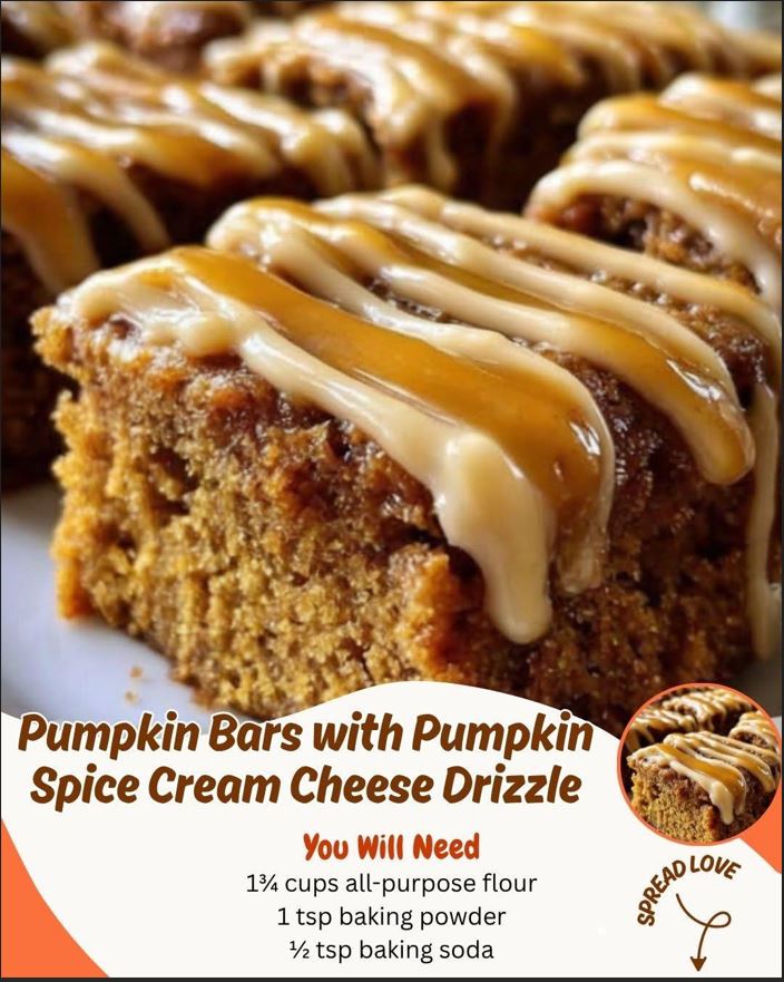 🎃 Pumpkin Bars with Pumpkin Spice Cream Cheese Drizzle