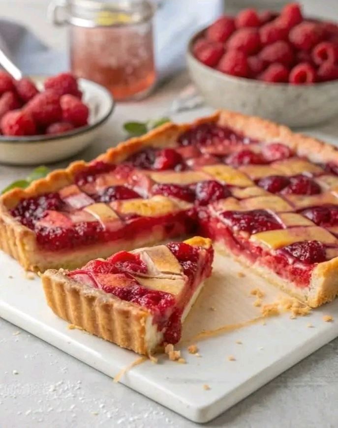 🍓 Raspberry Rhubarb Slab Pie with Buttery Crust 🌿🥧