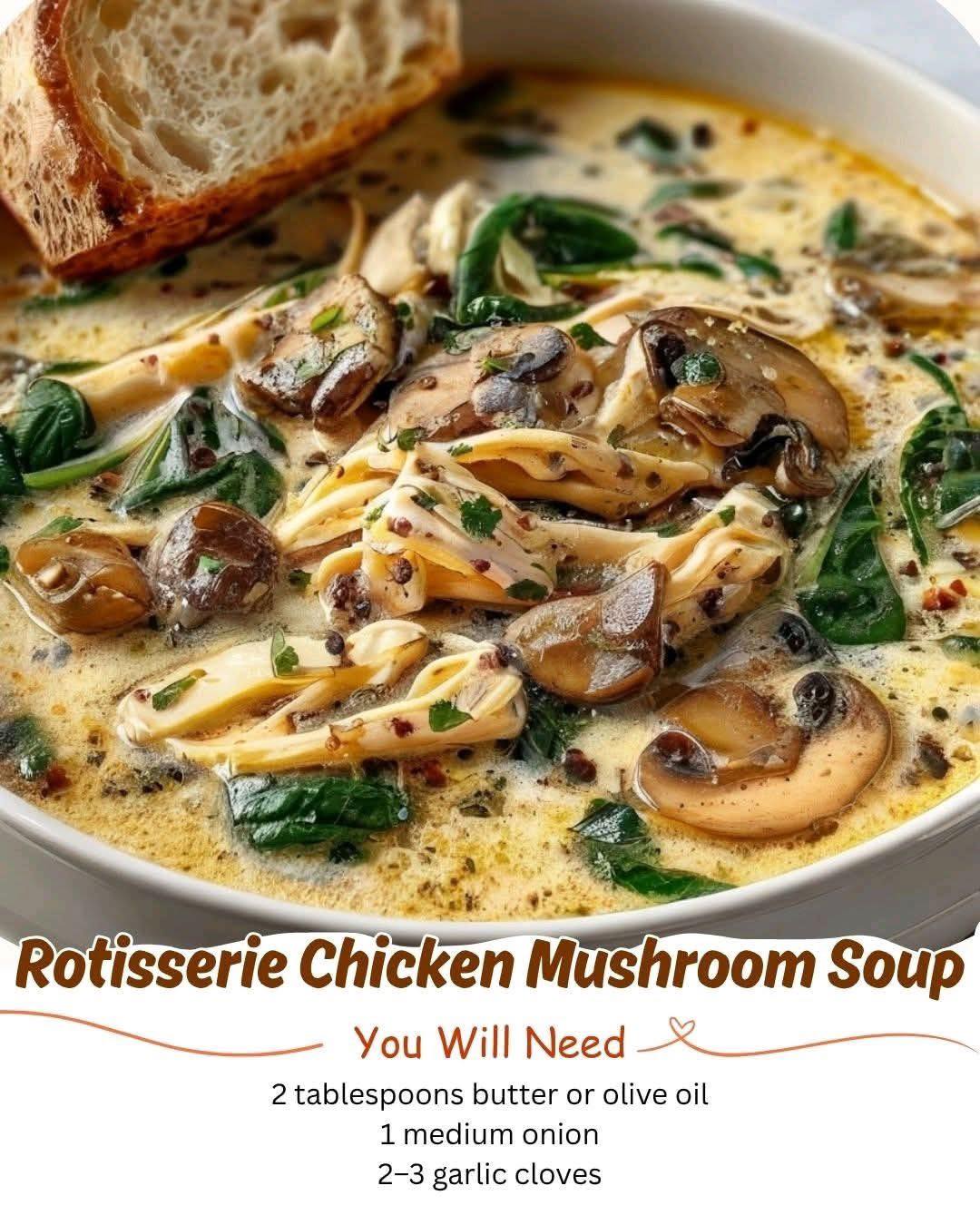 This Rotisserie Chicken Mushroom Soup is the ultimate comfort food, perfect for cozying up on a cold day. With tender mushrooms, flavorful rotisserie chicken, and a creamy broth, it’s easy to prepare and packed with delicious flavors. Whether you’re making it for a weeknight meal or serving guests, this soup is sure to impress!