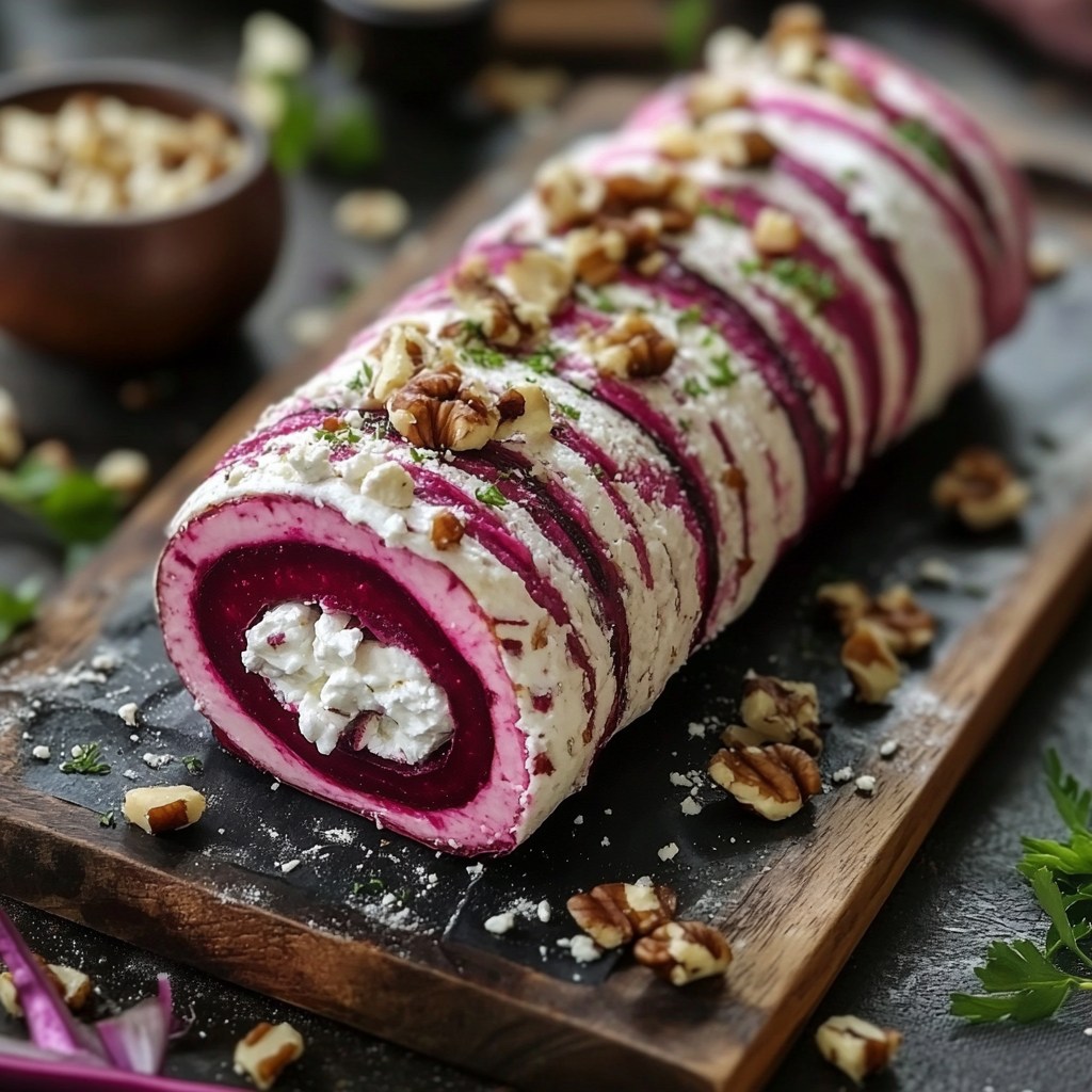 💖🐐 Savory Pink Yule Log: Beetroot, Fresh Goat Cheese & Crunchy Walnut Roll