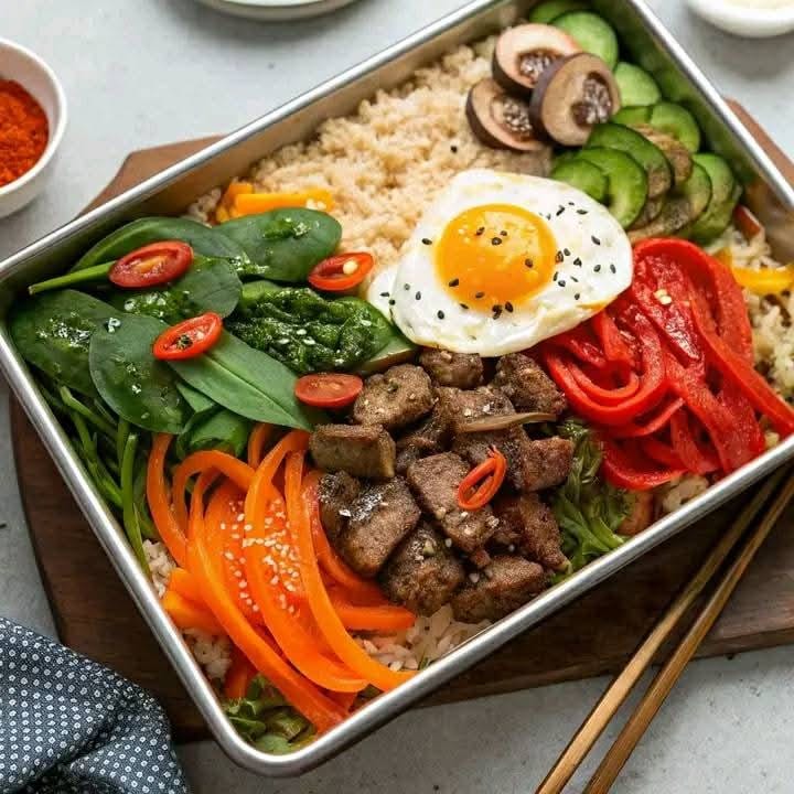 A vibrant, one-pan take on a Korean classic — this Sheet Pan Bibimbap is colorful, easy to prepare, and packed with bold, satisfying flavors. With roasted vegetables, perfectly baked eggs, and a touch of gochujang for spice, it’s a wholesome dish that delivers comfort and balance in every bite.