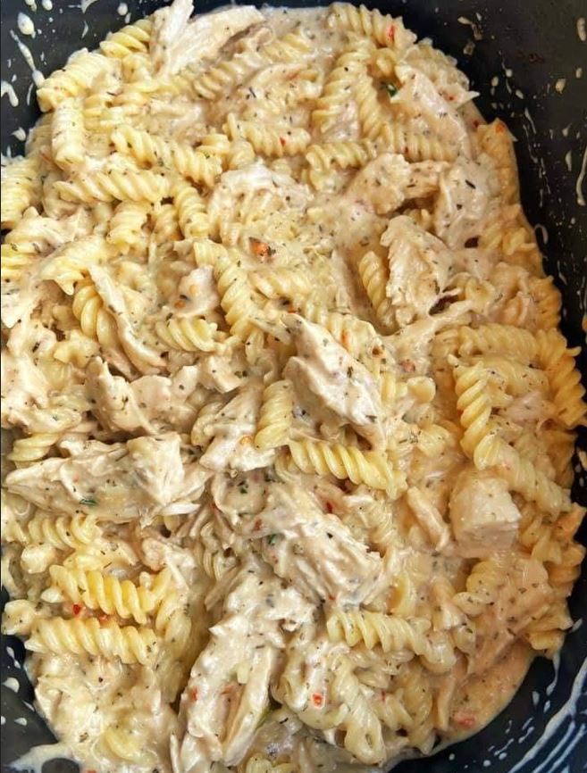 Slow Cooker Garlic Parmesan Chicken Pasta
