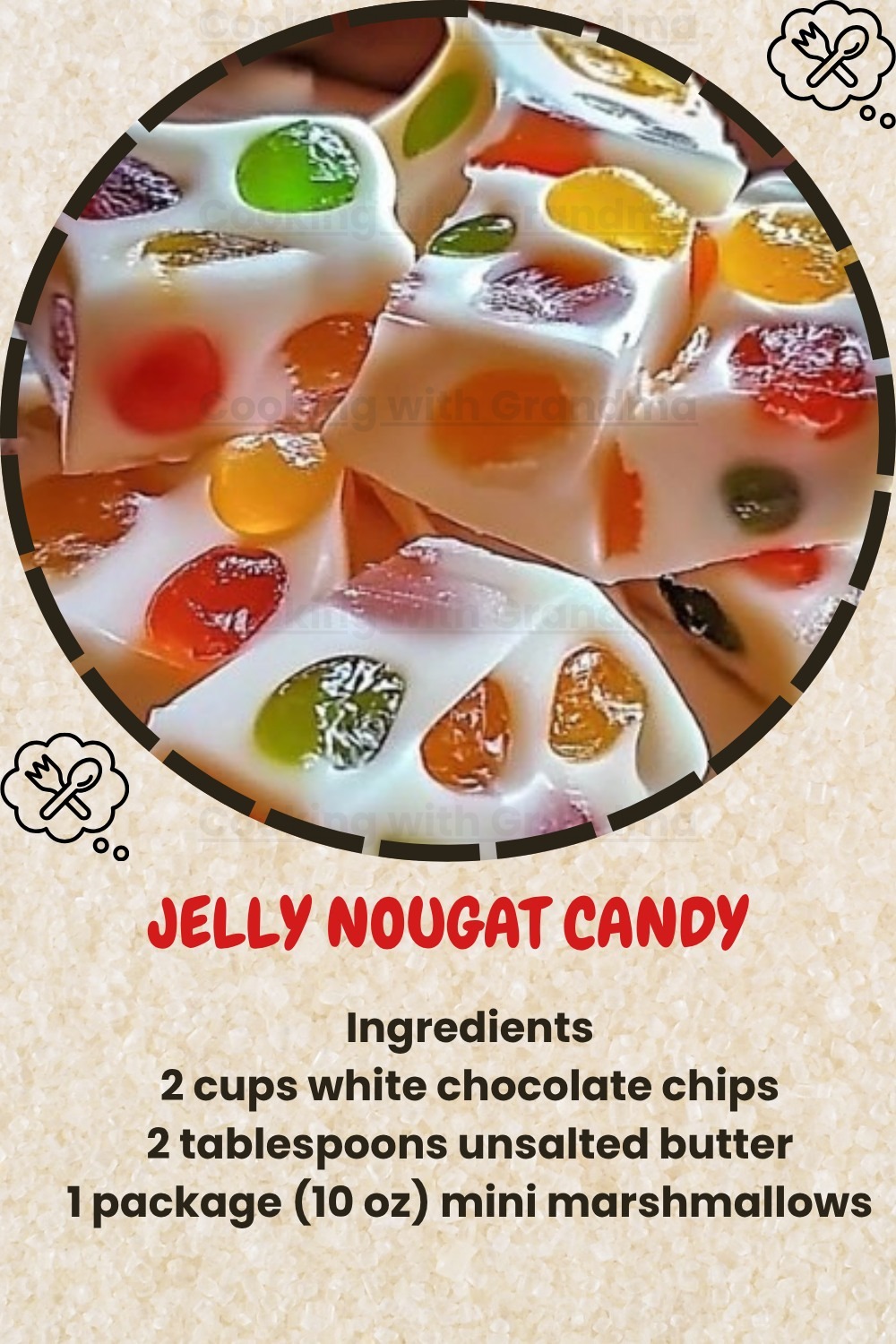 This Jelly Nougat Candy is a colorful, chewy, no-bake treat that’s easy to make and perfect for holidays, gift tins, or anytime sweet cravings hit. With a smooth white chocolate and marshmallow base packed with chewy bits of gummy candy, each bite is a nostalgic blend of soft nougat and playful fruity flavor!