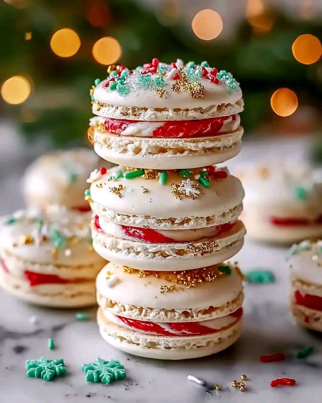 🎄🍰 Sparkling Christmas Cake Macarons – Light as Snow, Sweet as the Season!