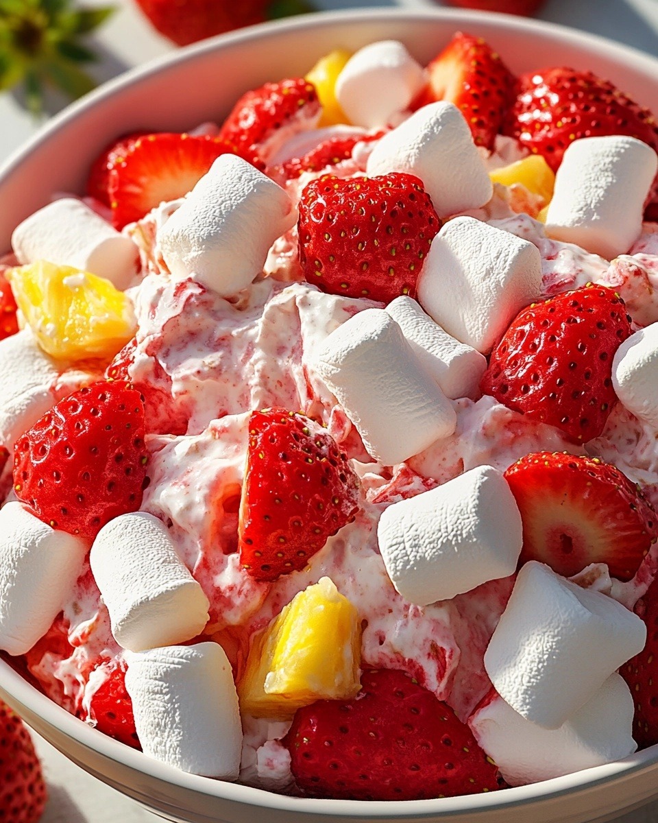 This nostalgic Strawberry Fluff Salad is a creamy, fruity, and colorful crowd-pleaser! Perfect for potlucks, BBQs, and family gatherings, it blends strawberry Jell-O, vanilla pudding, whipped topping, and fresh fruit into a sweet, fluffy delight. Bonus: no baking required!