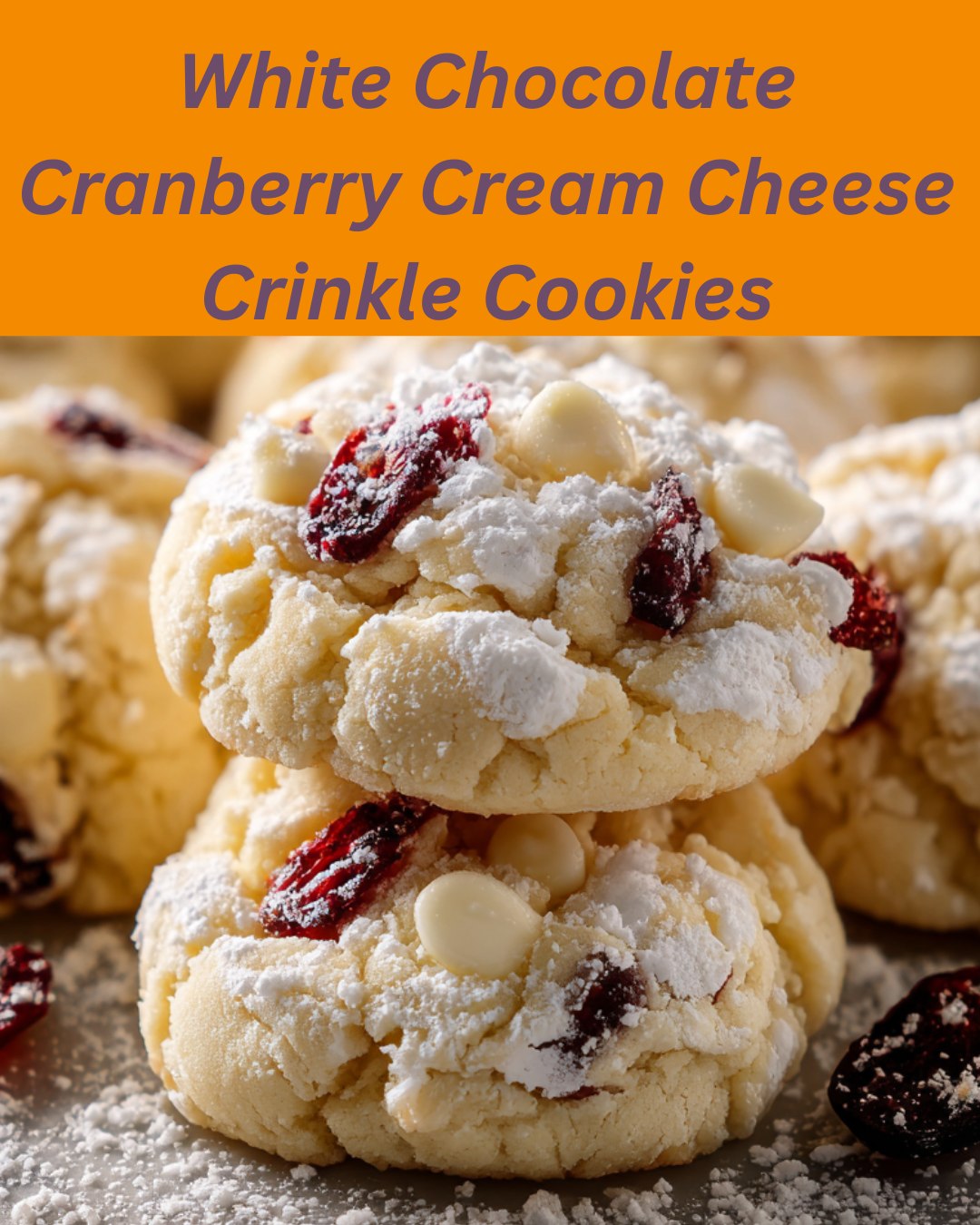 These White Chocolate Cranberry Cream Cheese Crinkle Cookies are everything you want in a holiday cookie — soft, rich, festive, and irresistibly pretty. With their snowy powdered sugar coating, tender cream cheese dough, bursts of tart dried cranberries, and pockets of sweet white chocolate, they’re a standout addition to any Christmas cookie tray.