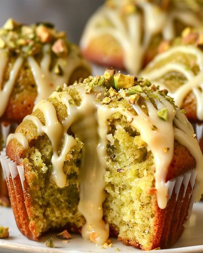 These White Chocolate Pistachio Muffins are soft, fluffy, and packed with indulgent flavor. Made with finely chopped pistachios and drizzled with creamy melted white chocolate, they strike the perfect balance between nutty and sweet. Finished with a sprinkle of extra pistachios for crunch and color, they make a beautiful and delicious treat for breakfast, brunch, or dessert.