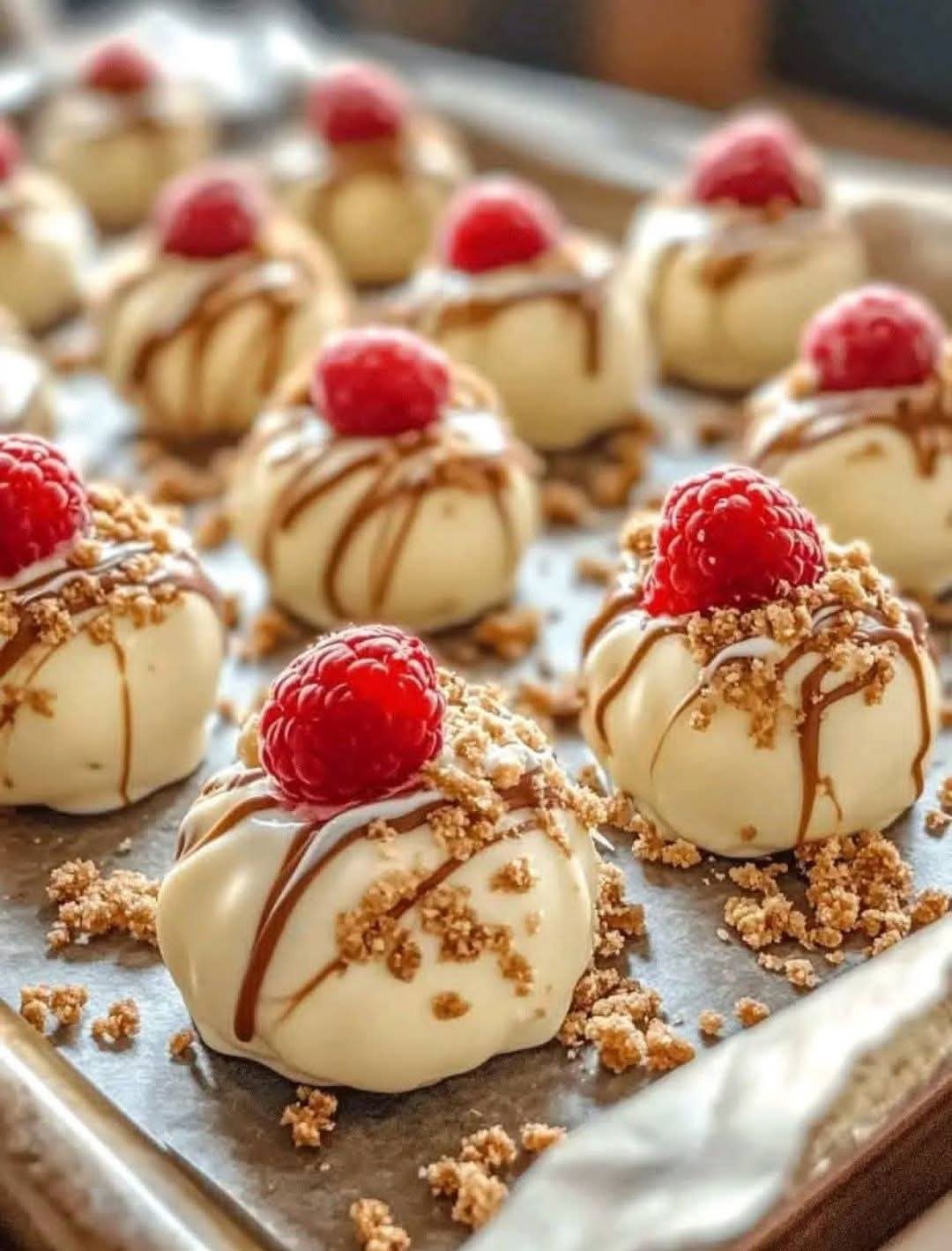 White Chocolate Raspberry Cheesecake Balls 🍰🍇