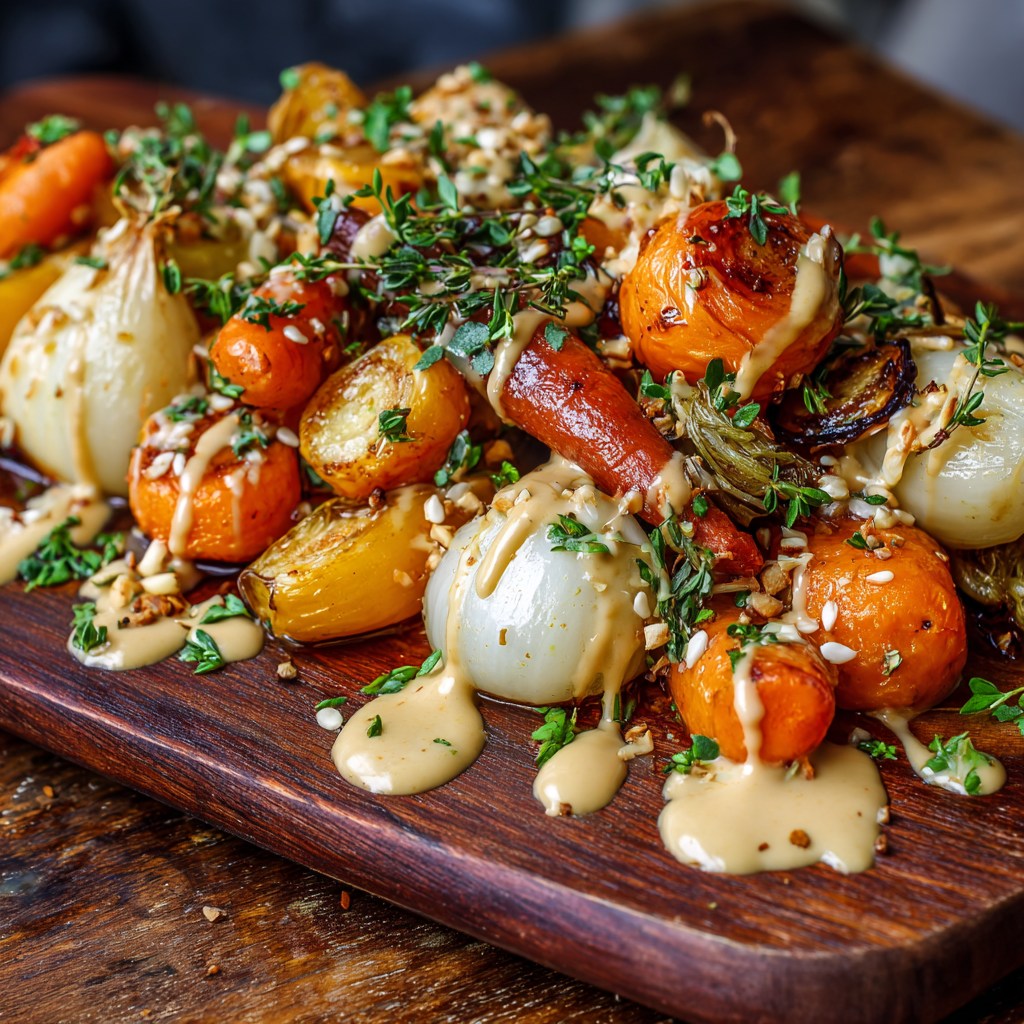 🥕 Winter’s Revelation! 🍋 Honey-Thyme Roasted Carrots & Confit Turnips with Lemon-Tahini Sauce